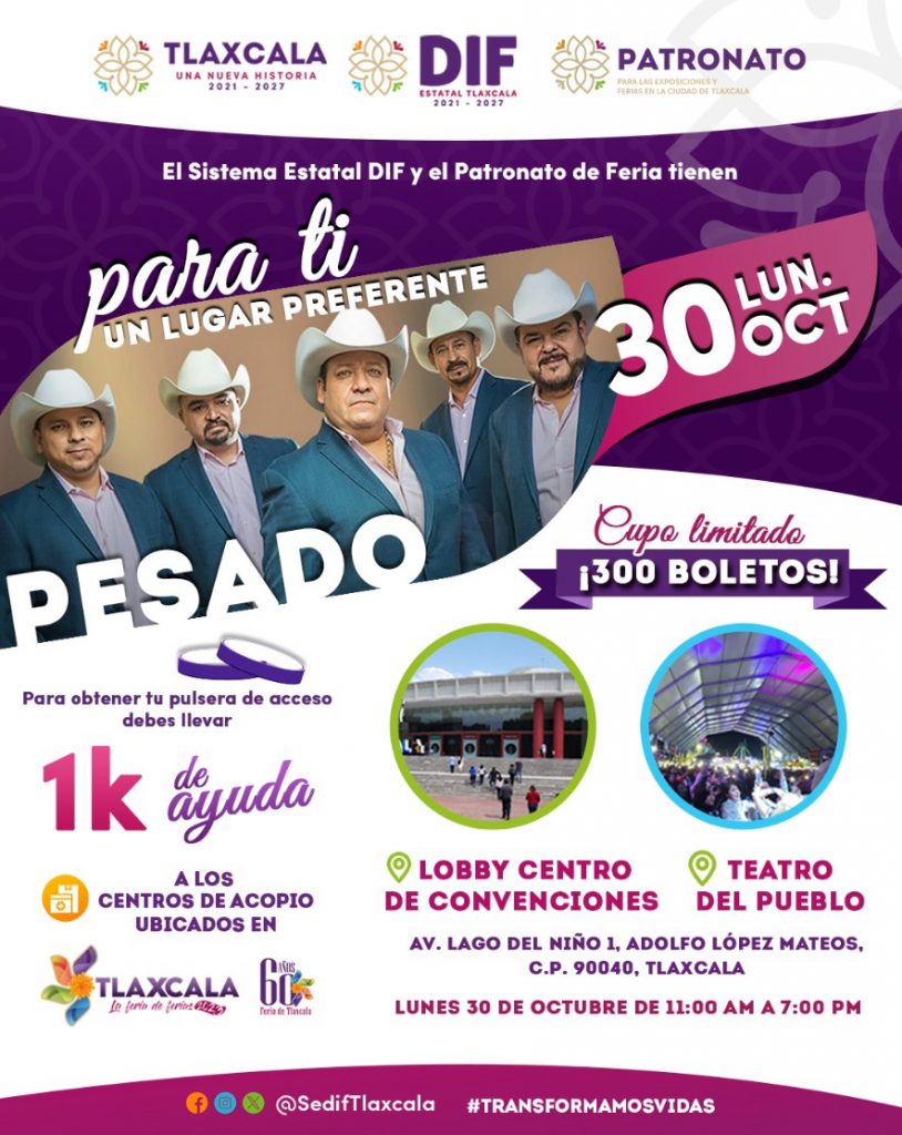 Acude a los centros de acopio que el SEDIF Tlaxcala instaló en el lobby del Centro de Convenciones y en el Teatro del Pueblo, entrega tu kilo de ayuda y recibirás una pulsera para tener acceso a la zona especial.