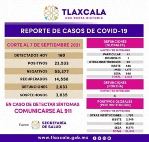 REGISTRA SESA 160 CASOS POSITIVOS DE COVID-19 EN TLAXCALA