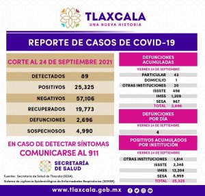 REGISTRA SESA 89 CASOS POSITIVOS DE COVID-19 EN TLAXCALA