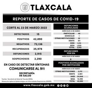 REGISTRA SESA 15 CASOS POSITIVOS Y CERO DEFUNCIONES DE COVID-19 EN TLAXCALA