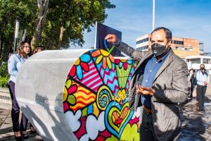 Autoridades municipales de Apizaco develan corazón recolector de tapitas y disponen ambulancia para niños.