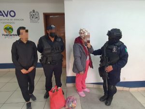 REÚNEN POLICÍAS DE HUAMANTLA A PERSONA EXTRAVIADA CON SUS FAMILIARES
