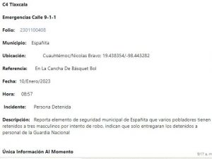 ATIENDE POLICÍA MUNICIPAL DE TLAXCALA REPORTE POR DETONACIONES DE ARMA DE FUEGO EN SAN LUCAS CUAUHTELULPAN