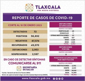 REGISTRA SECTOR SALUD 72 CASOS POSITIVOS Y CERO DEFUNCIONES DE COVID-19 EN TLAXCALA