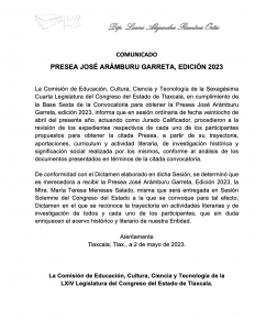 Determinan que la Mtra. María Teresa Meneses Salado reciba presea «José Arámburu Garreta» 2023