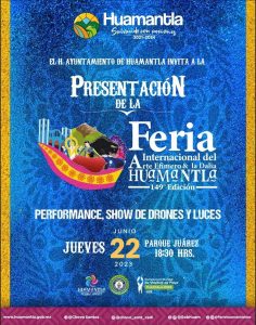 PRESENTARÁ AYUNTAMIENTO DE HUAMANTLA CARTEL DE LA FERIA INTERNACIONAL DEL ARTE EFÍMERO Y LA DALIA 2023