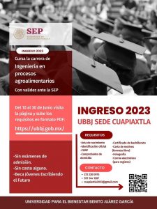 INVITAN AYUNTAMIENTO DE HUAMANTLA Y LA UNIVERSIDAD BENITO JUÁREZ A INSCRIBIRSE EN LA CARRERA DE PROCESOS AGROALIMENTARIOS