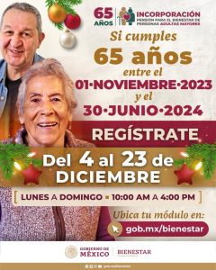 Hasta el 23 de diciembre, registro a Pensión de Adultos Mayores a quienes cumplen 65 entre noviembre y junio