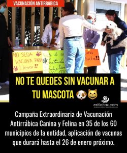 INICIA SECTOR SALUD CAMPAÑA DE VACUNACIÓN ANTIRRÁBICA CANINA Y FELINA