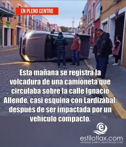 Camioneta es colisionada por vehículo y vuelca en Tlaxcala Centro