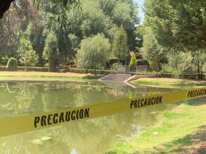 Personal de Protección Civil de Apetatitlán de Antonio Carvajal realiza labores de acordonamiento previo al sábado de gloria en el parque ecológico “Las Cuevas”.
