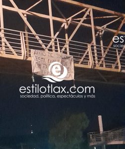 Dejan manta sobre puente de Totolac para acusar a político tlaxcalteca