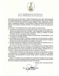 Diócesis de Tlaxcala pide a feligreses no dejarse engañar por jóvenes que se hacen pasar Frailes Franciscanos