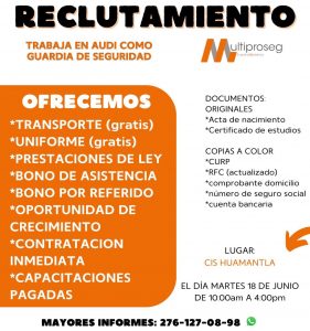 COORDINACIÓN DE DESARROLLO ECONÓMICO DE HUAMANTLA INVITA A PARTICIPAR EN VACANTE DE GUARDIA DE SEGURIDAD
