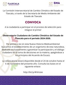EMITEN CONVOCATORIA PARA INTEGRAR PRIMER OBSERVATORIO CIUDADANO DE CAMBIO CLIMÁTICO EN TLAXCALA
