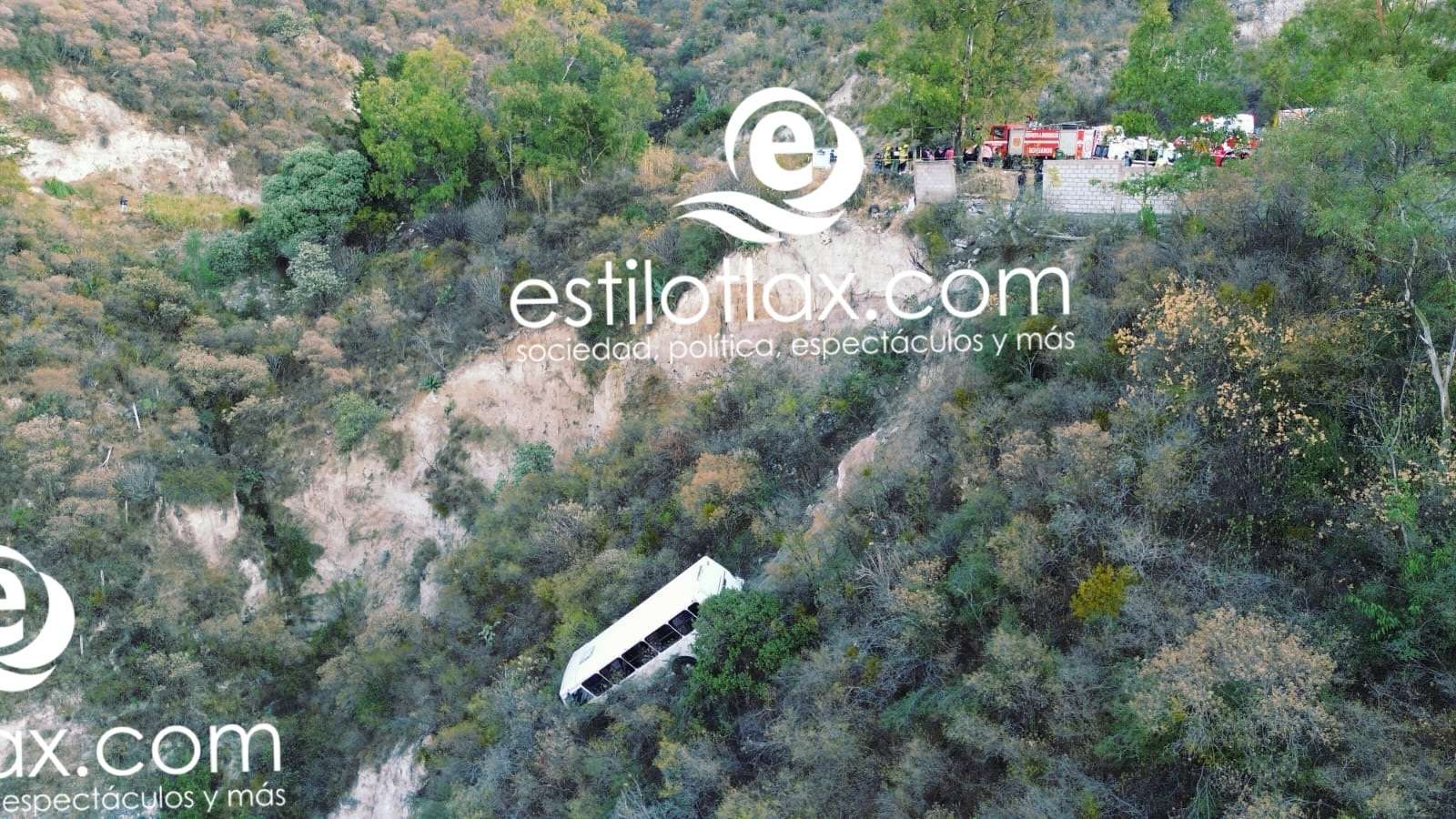 Milagrosamente salvan la vida trabajadores tras caer su camión de transporte a un barranco en Panotla