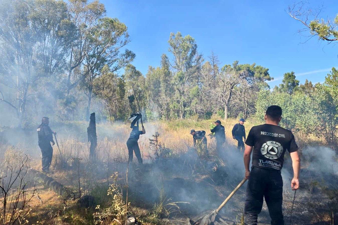 PROTECCIÓN CIVIL Y SEGURIDAD PÚBLICA DEL MUNICIPIO DE TLAXCALA TRABAJAN DE MANERA COORDINADA PARA MITIGAR INCENDIO DE PASTIZAL ENTRE AMATECH Y LA OCOTERA