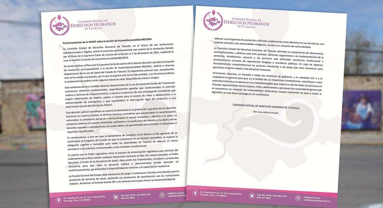 Posicionamiento de la CEDHT sobre la Acción de Inconstitucionalidad 89/2024