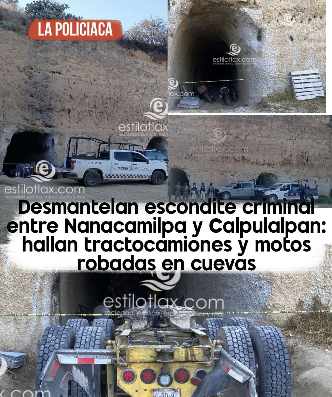 Desmantelan escondite criminal entre Nanacamilpa y Calpulalpan: hallan tractocamiones y motos robadas en cuevas