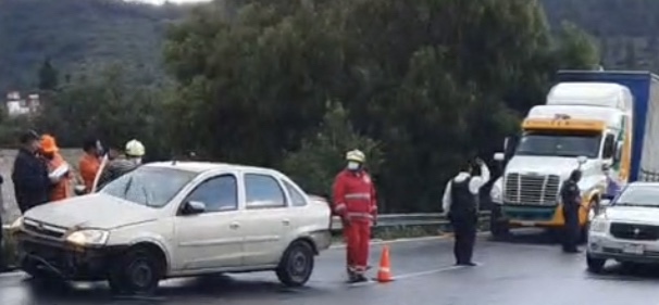 Sobre la carretera Apizaco -Tlaxcala a la altura de El Molinito se suscitó un accidente automovilístico derivado del exceso de velocidad y pavimento mojado, que ocasionó que un coche tipo Corsa perdiera el control y diera varias vueltas pars terminar impactado por un tráilerque no alcanzo a frenar.