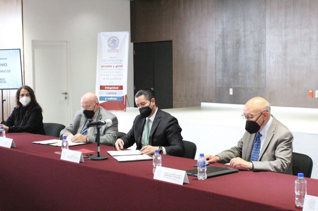 Con el fin de diseñar, programar, estructurar e implementar programas y proyectos de desarrollo académico, investigación, difusión científica en áreas de criminalística, delitos electrónicos, tecnologías de la información, prevención del delito y de la violencia de género, el Magistrado Presidente del Tribunal Superior de Justicia y del Consejo de la Judicatura (TSJ-CJE), Héctor Maldonado Bonilla, firmó un convenio de concertación de acciones con el Rector del Centro de Prácticas Universitarias Lucía Botín México, José Alfredo Piera Pellicer.