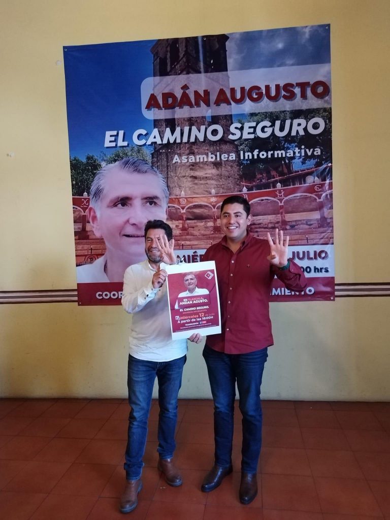 En conferencia de prensa que ofreció la Delegación Estatal del movimiento de «Ahora es Adán Augusto» que encabeza Carlos Zurita, delegado estatal del movimiento en Tlaxcala y Raymundo Vázquez Conchas, coordinador del movimiento estatal aseguraron que el ex Secretario de Gobernación es el mejor posicionado en las encuestas de Morena.