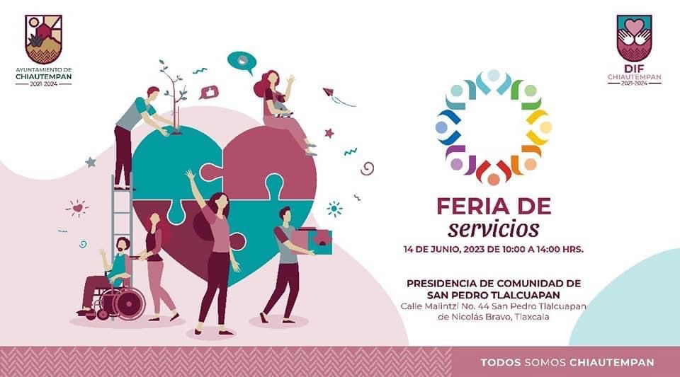 El Ayuntamiento de Chiautempan a través del Sistema Municipal para el Desarrollo Integral de la Familia (SMDIF) anunciaron la instalación de la Feria de Servicios en la comunidad de San Pedro Tlalcuapan, el próximo 14 de junio.