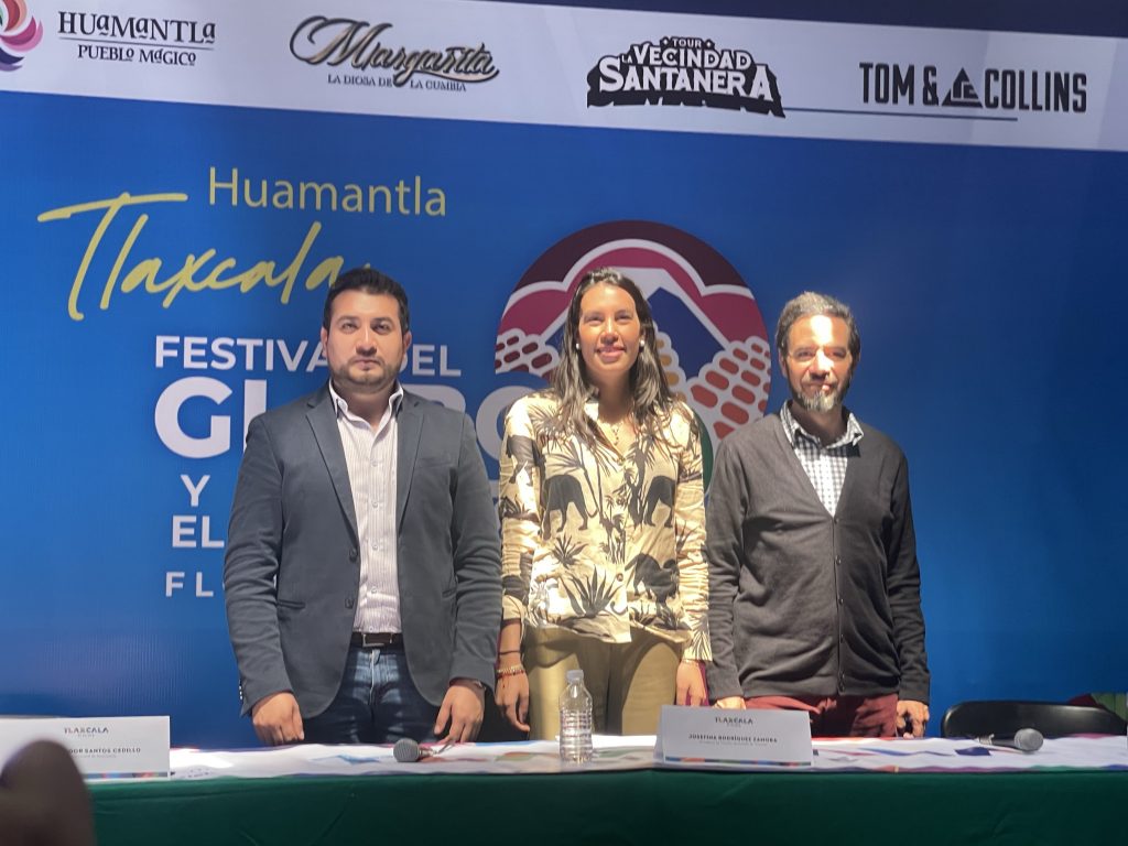 En conferencia de prensa, la Secretaria de Turismo Josefina Rodríguez Zamora, el Presidente Municipal de Huamantla, Salvador Santos Cedillo y el empresario Javier Zamora de Hacienda Soltepec, anunciaron el Festival del Globo y el Maíz Flor de Cielo”.