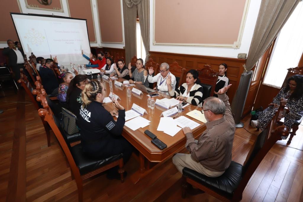 A la sesión asistieron los titulares de las dependencias que integran el Consejo Estatal contra la Trata de Personas: la presidenta del Tribunal Superior de Justicia del Estado (TSJE), Mary Cruz Cortés Ornelas; el secretario de Educación Pública, Homero Meneses Hernández y la coordinadora de Radio, Cine y Televisión del Gobierno del Estado (Coracyt), Elia Sánchez González.