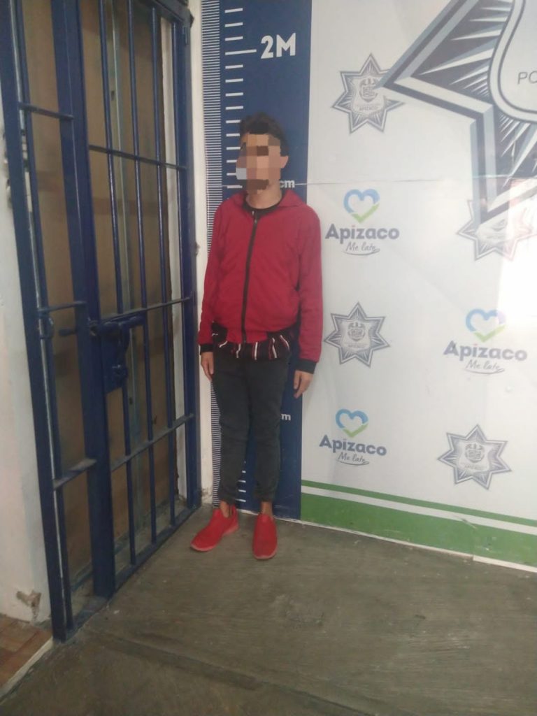 El asegurado se identificó como Kevin N., de 19 años de edad, originario de Apizaco, quien fue puesto a disposición de la Unidad de Investigación del Delito zona Norte, con sede en Apizaco, por el delito de robo.