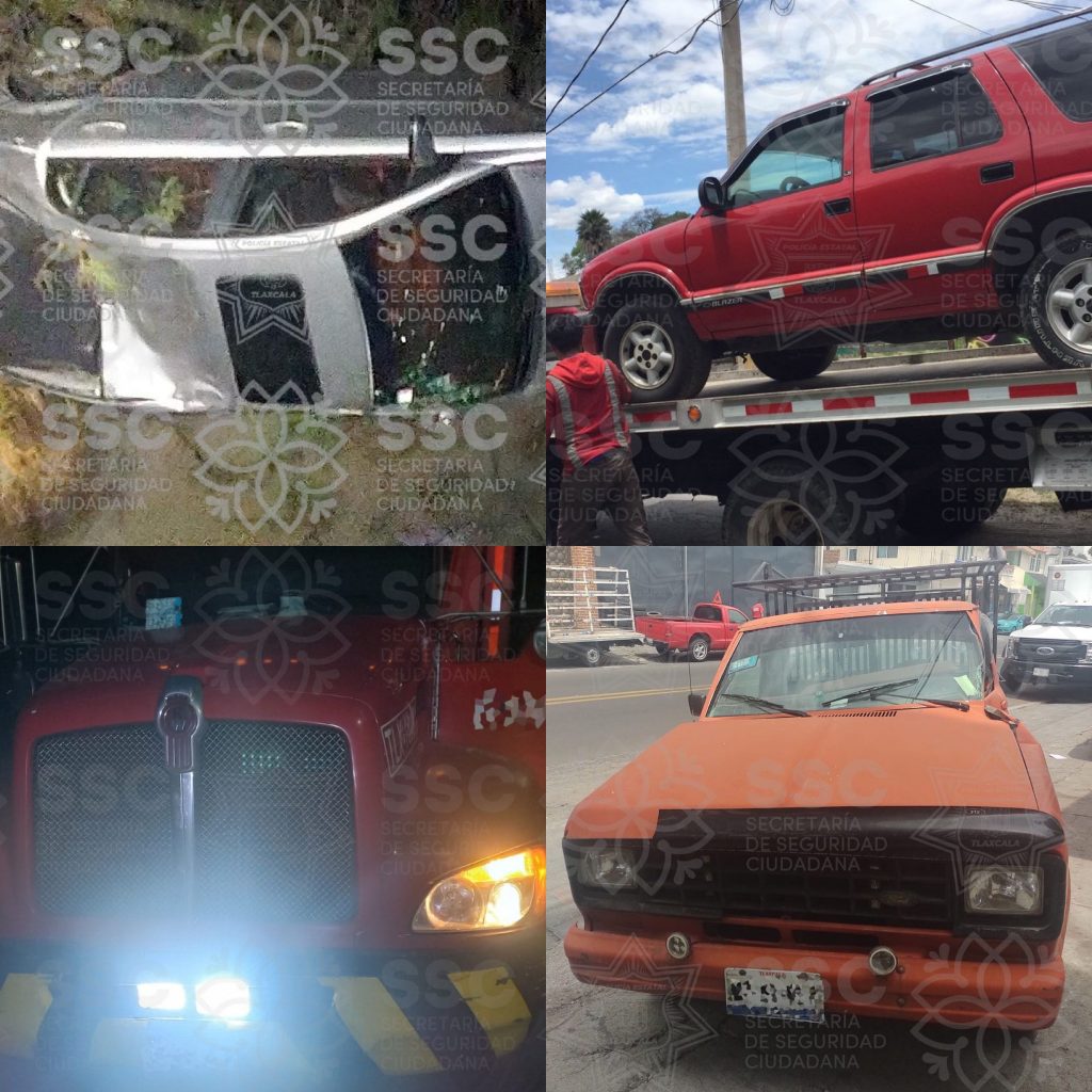 A su vez, en los municipios de Xicohtzinco y Huamantla, respectivamente, fue asegurada una camioneta marca Ford, tipo Ranger, color naranja, modelo 1998, con placas de circulación del estado de Tlaxcala y un tractocamión Kenworth, tipo T379, modelo 2013, color rojo y con placas del estado de Puebla.