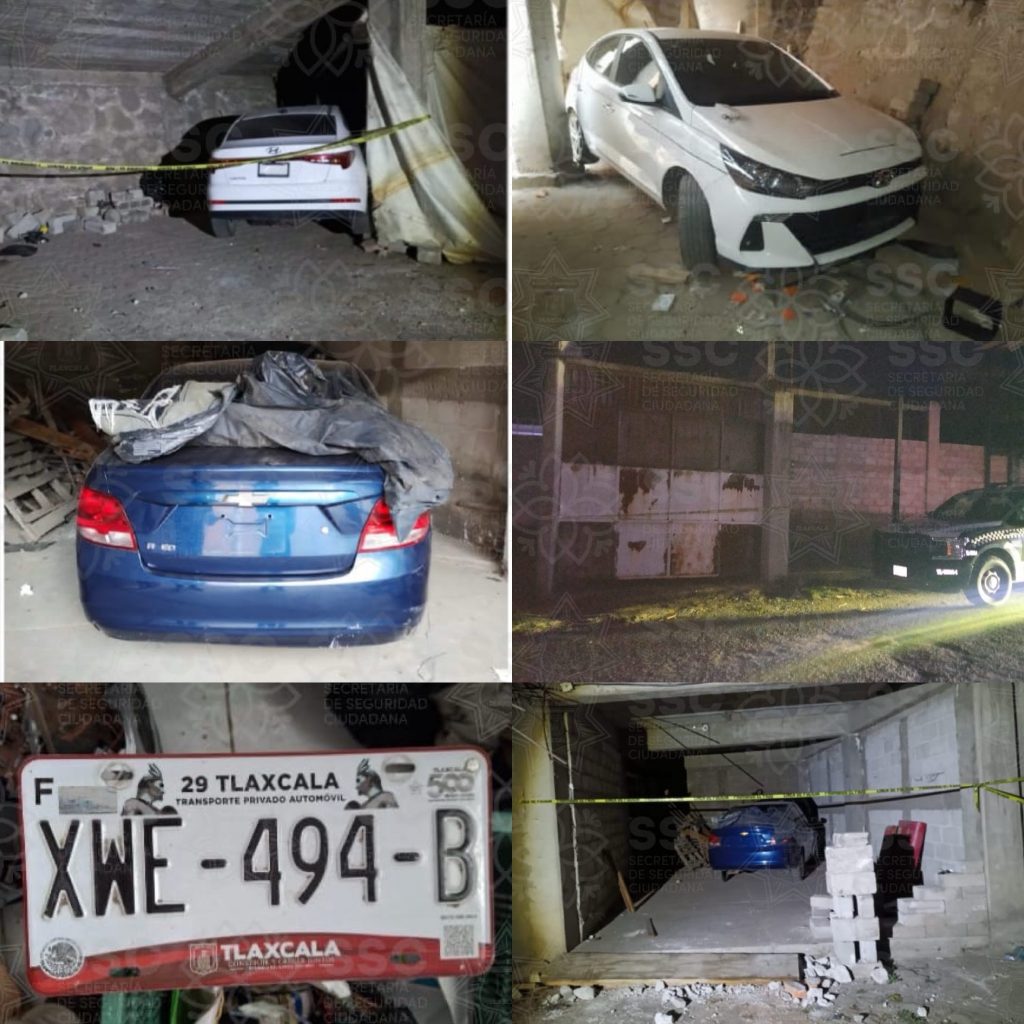 Trabajos de investigación e inteligencia permitieron a la Secretaría de Seguridad Ciudadana (SSC) ubicar y asegurar un inmueble en el municipio de Chiautempan, el cual era utilizado para presuntamente ocultar vehículos con reporte de robo.