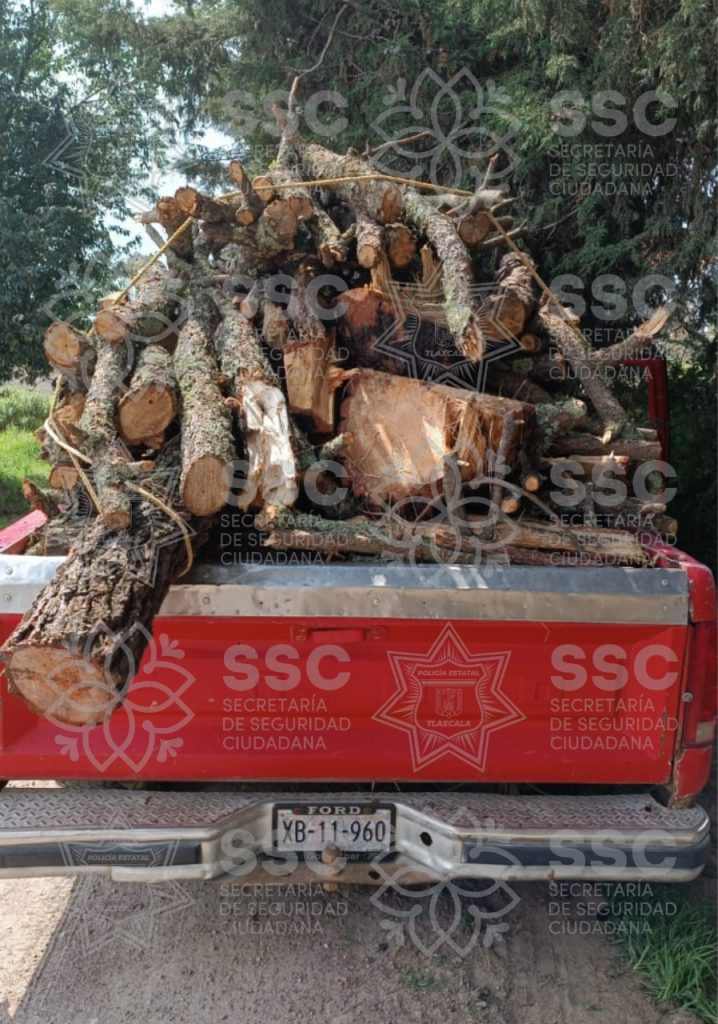 Durante un recorrido de seguridad y vigilancia, personal de Policía de Montaña, perteneciente a la Secretaría de Seguridad Ciudadana (SSC), aseguró un vehículo cargado con material forestal en el municipio de San José Teacalco.