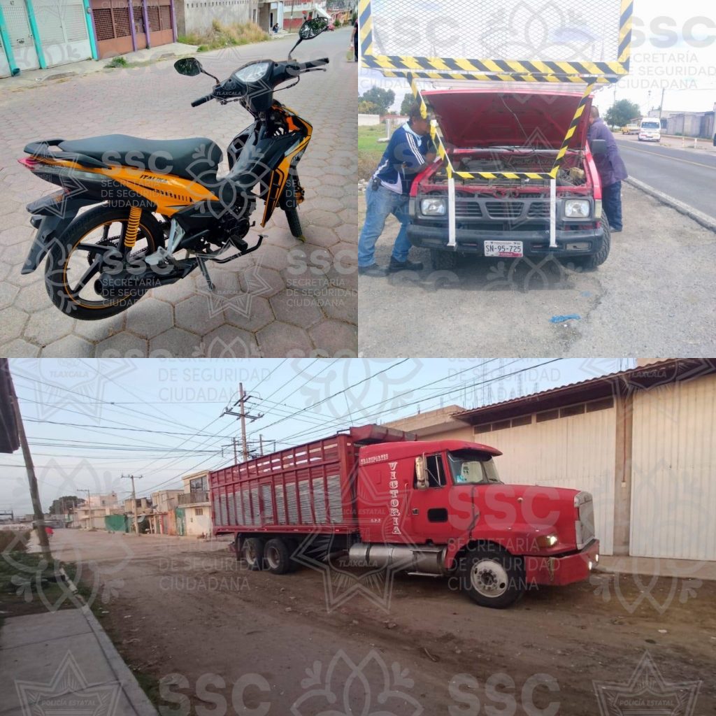 Las acciones tuvieron lugar en los municipios de Huamantla, Santa Ana Chiautempan y Tepetitla, respectivamente, donde los elementos de seguridad en acciones distintas aseguraron una camioneta tipo Estaquitas de la marca Nissan con matrícula vehicular SN95725, la cual cuenta con reporte de robo en número de motor, así como al conductor por no comprobar legalmente la procedencia y posesión de la misma, siendo presunto responsable de cometer el delito de encubrimiento por receptación.