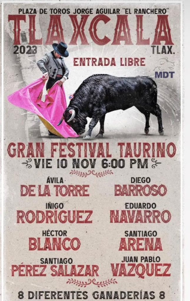 En el marco de “Tlaxcala, la Feria de Ferias 2023” se realizará el segundo Gran Festival Taurino de aficionados prácticos en la Plaza de Toros Jorge “El Ranchero” Aguilar, este viernes 10 de noviembre a las 19:00 horas.