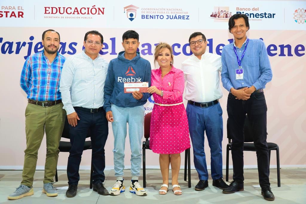 La gobernadora Lorena Cuéllar Cisneros atestiguó la entrega de tarjetas del Banco de Bienestar a más de 800 beneficiarios de la Beca Universal «Benito Juárez» en el municipio de Apizaco.