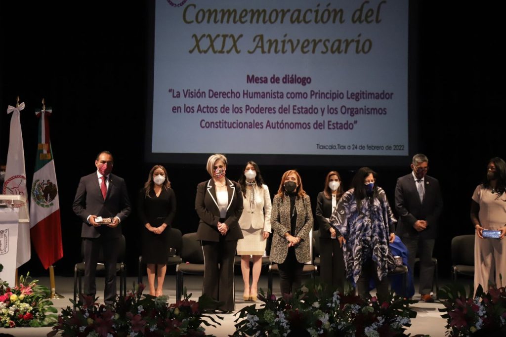 En el Teatro Xicohténcatl de la ciudad capital, la titular del Ejecutivo local externó que impulsa acciones para alinear el trabajo gubernamental a los estándares nacionales e internacionales de los derechos humanos en favor de la población tlaxcalteca, apegadas a la legalidad, el respeto entre poderes y a la soberanía de los municipios.