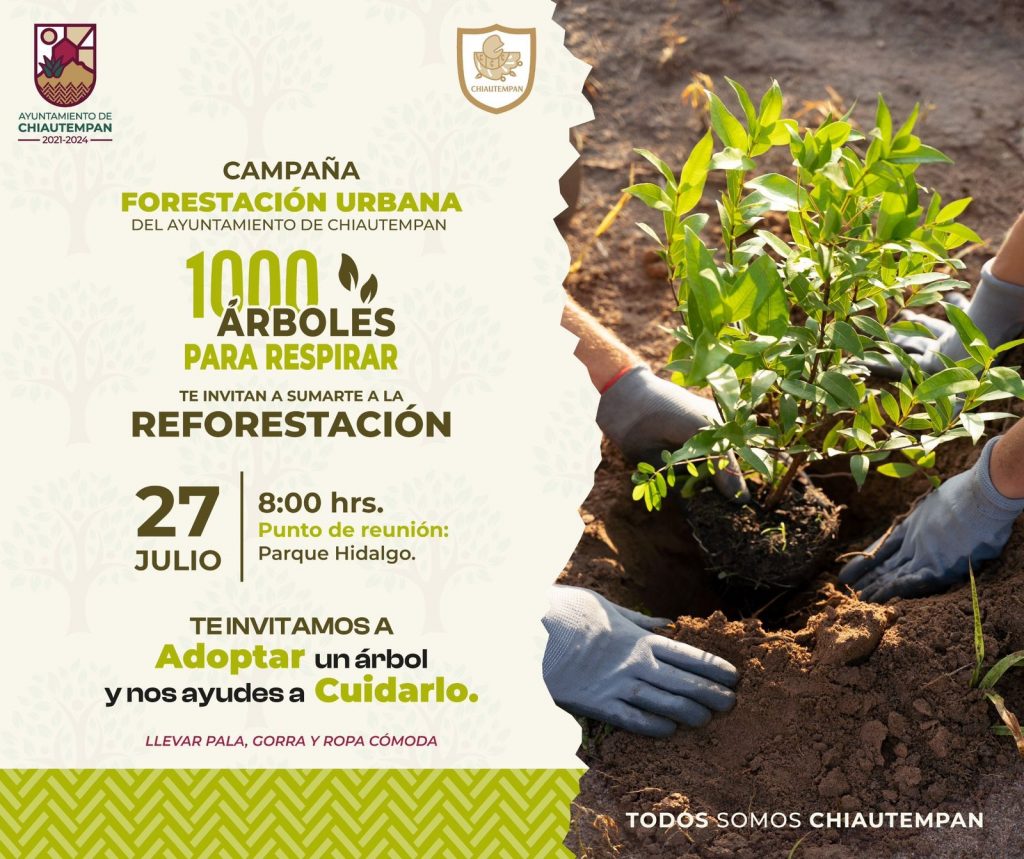 AYUNTAMIENTO DE CHIAUTEMPAN INVITA A QUE TE SUMES A PLANTAR UN ÁRBOL Y CONTINUAR CON LA CAMPAÑA “1000 ÁRBOLES PARA RESPIRAR”