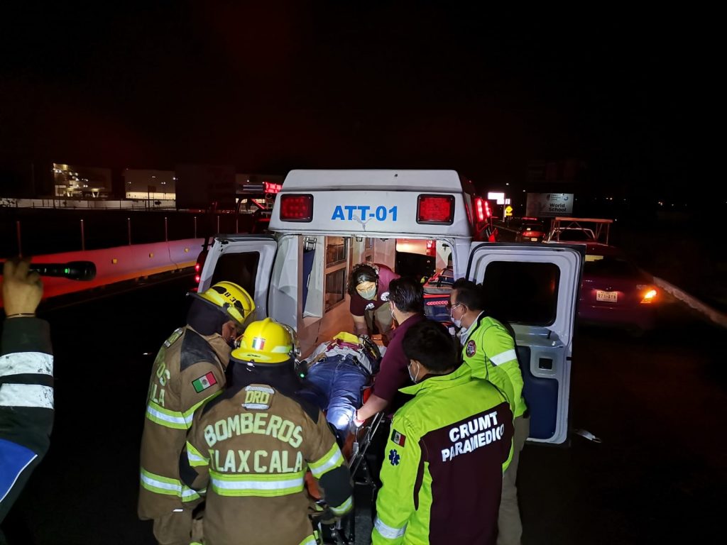 Los Bomberos pertenecientes a la Secretaría de Seguridad Ciudadana (SSC) acudieron al libramiento Tlaxcala a la altura de San Sebastián Atlahapa, frente al centro comercial Galerías, donde un vehículo marca Nissan tipo Versa color azul con placas de circulación XVX-018-A del estado, volcó sobre la cinta asfáltica y en su interior un masculino lesionado.