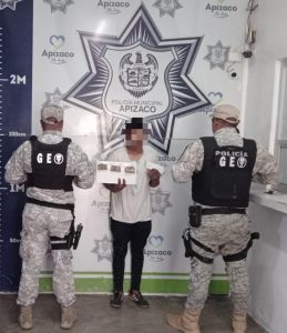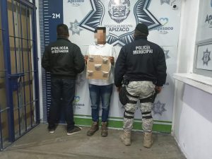Policía Municipal de Apizaco detiene a dos hombres por delitos contra la salud y faltas administrativas