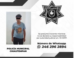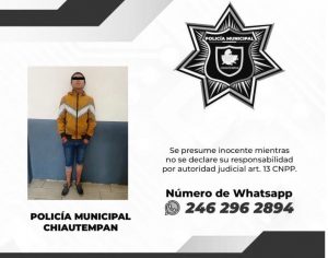 Detiene Policía de Chiautempan a sujeto por alteración del orden público y otras infracciones municipales