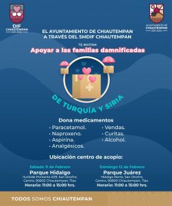 Invita SMDIF Chiautempan a campaña en apoyos a nuestros hermanos de Turquía y Siria