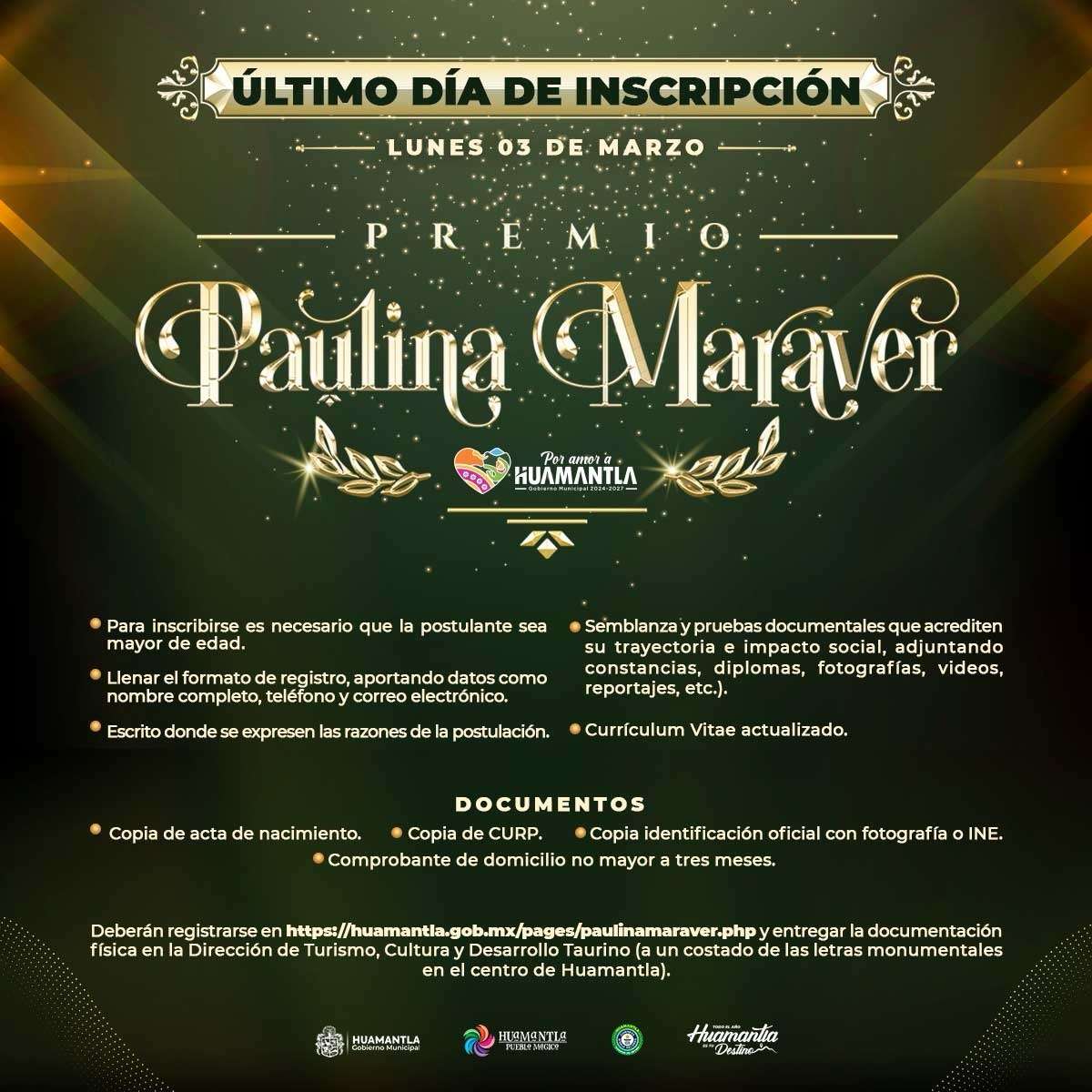 CONCLUYE HOY EN HUAMANTLA EL REGISTRO AL GALARDÓN “PAULINA MARAVER” QUE RECONOCE APORTACIONES DE MUJERES DESTACADAS