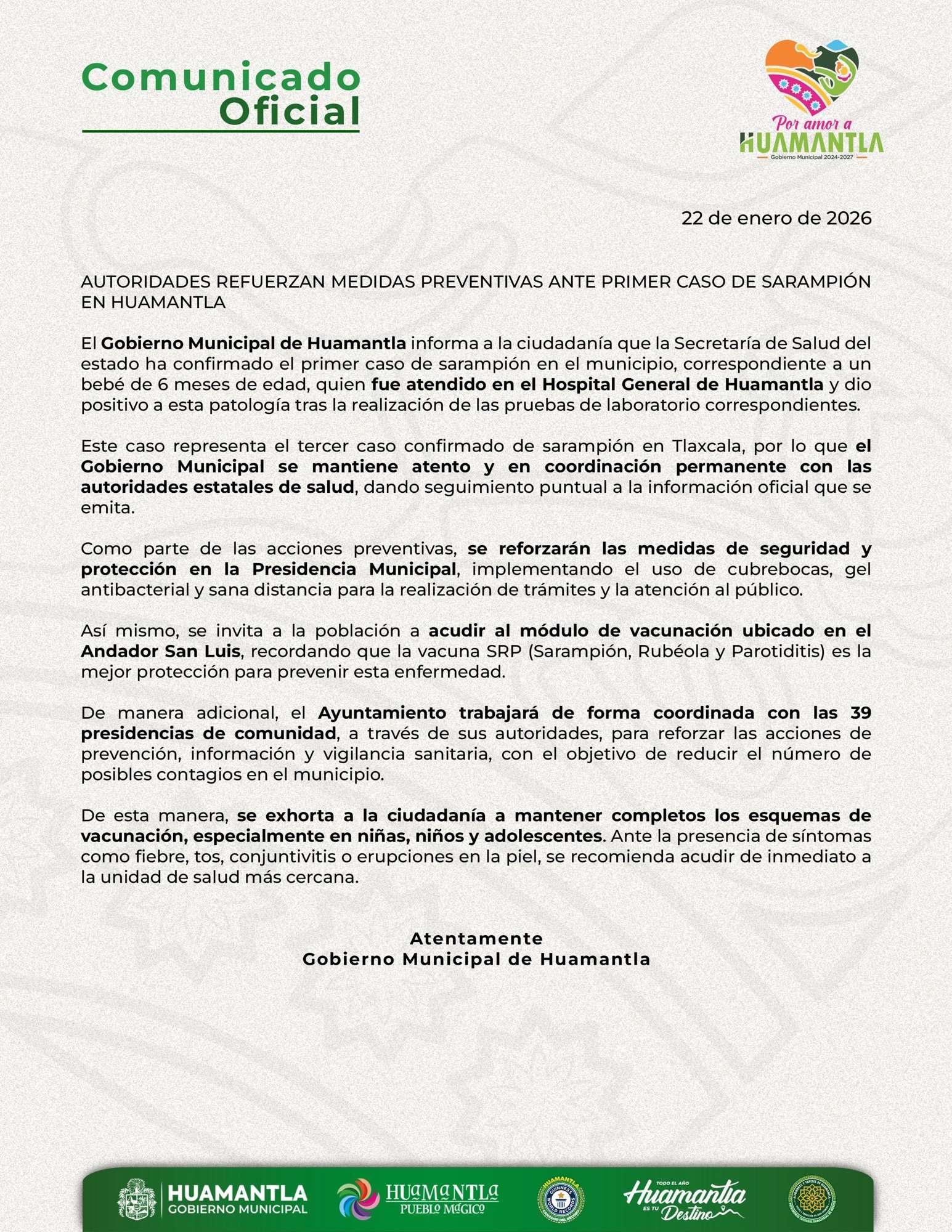 AUTORIDADES REFUERZAN MEDIDAS PREVENTIVAS ANTE PRIMER CASO DE SARAMPIÓN EN HUAMANTLA
