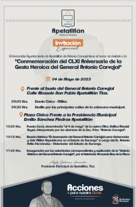 Listos para conmemorar el Aniversario de la CLXI Gesta Histórica del General Antonio Carvajal en Apetatitlán