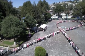 Conmemora IMSS Tlaxcala con “moño humano rosa” contra cáncer de mama