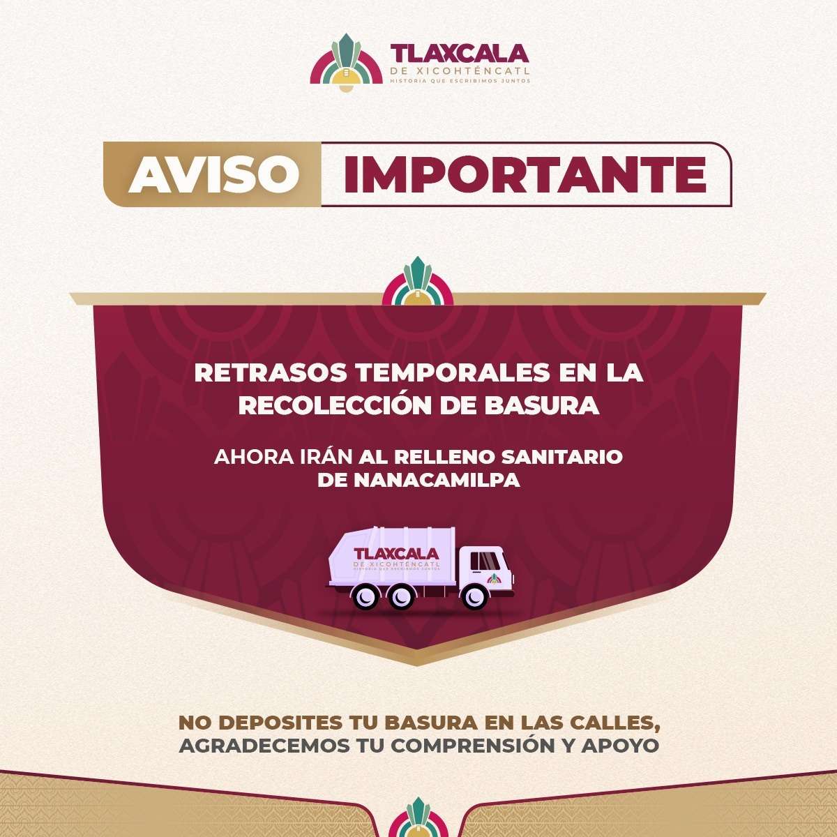 Ayuntamiento de Tlaxcala llama a la corresponsabilidad ciudadana ante ajustes temporales en la recolección de basura
