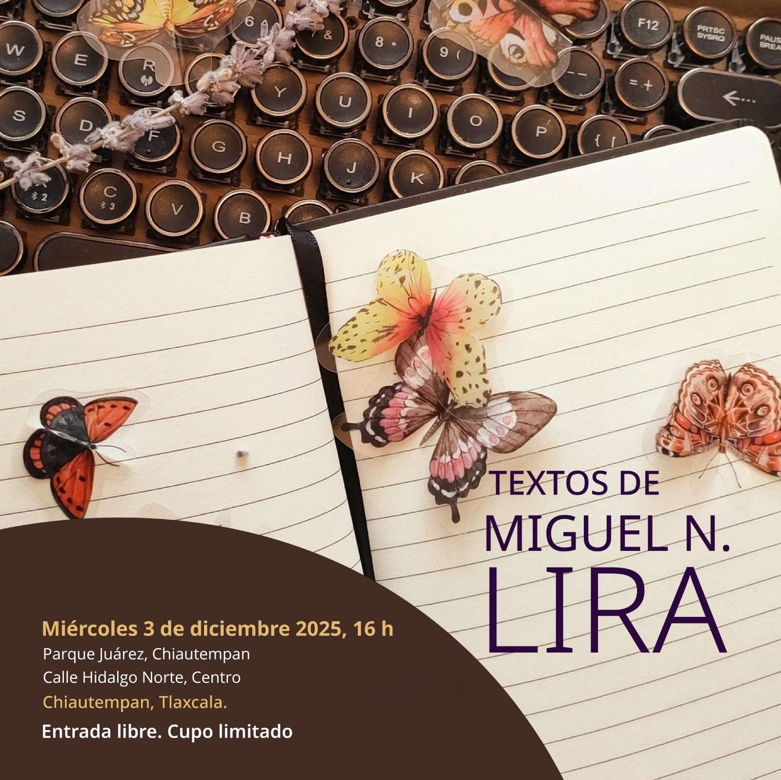 El gobierno de Chiautempan, presidido por Blanca Angulo, a través del DIF Municipal y la Dirección de Cultura y Turismo, realizará este foro con textos de Miguel N. Lira, en el marco del 120 aniversario de su natalicio, donde también participará el actor Ariel López Padilla.