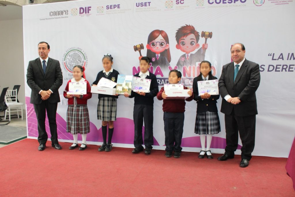 Posteriormente, al evento que también contó con la asistencia de la Presidenta honorífica del Sistema Estatal para el Desarrollo Integral de la Familia (Sedif), Mariana Espinoza de los Monteros Cuéllar, se dio paso a la sesión del Tribunal Electoral Infantil, integrado por: Montserrat Flores Cuatianquiz, del municipio de Santa Isabel XIloxoxtla, de la escuela primaria Ignacio Zaragoza quien fungió como presidenta; mientras que Josep Daniel Ochoa Hernández del municipio de Papalotla, de la escuela primaria Carmen Serdán fue Magistrada Infantil y Wendy Yatxiri Dotor Vázquez, del municipio Amaxac de Guerrero, de la escuela primaria Vicente Guerrero, participó como Magistrada Infantil.