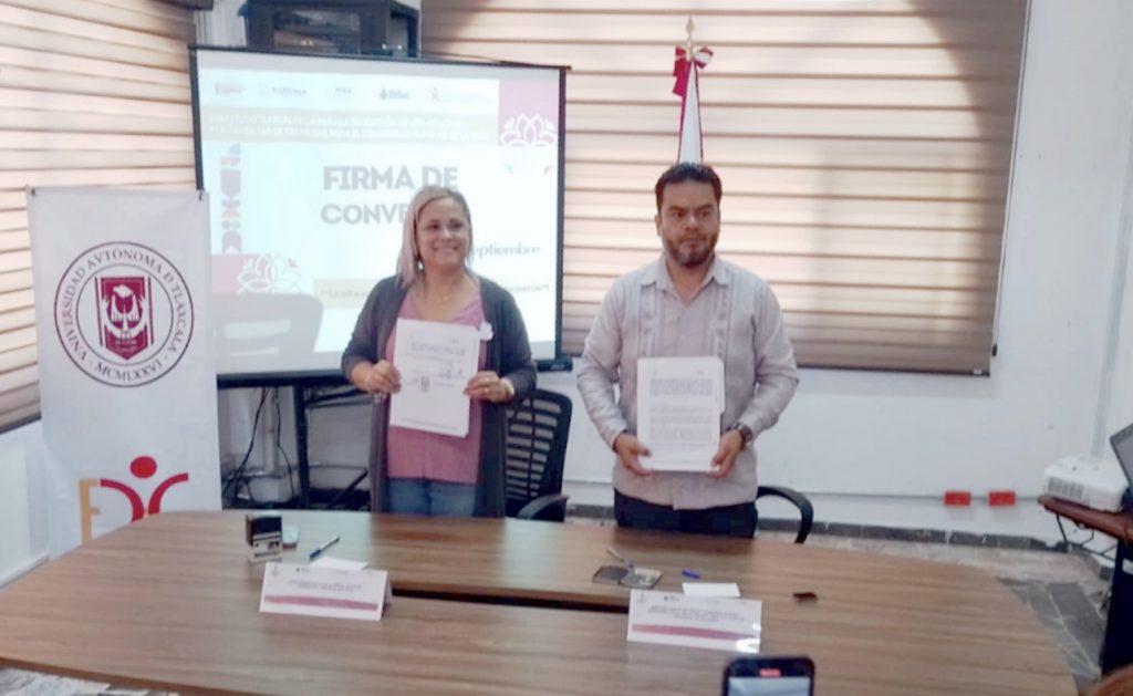 En esta actividad, que fortalece los objetivos transversales del Plan Institucional de Mejoramiento Acelerado (PIMA), el Doctor Josué Camacho Candia, Director de la Facultad, a nombre del Doctor Serafín Ortiz Ortiz, Rector de la UATx, enfatizó que, con la firma de este acuerdo, de manera conjunta se tendrá la oportunidad de coadyuvar a la tarea y al esfuerzo por unificar los servicios de alfabetización, de nivel primaria y secundaria, así como los materiales y contenidos educativos del Instituto.